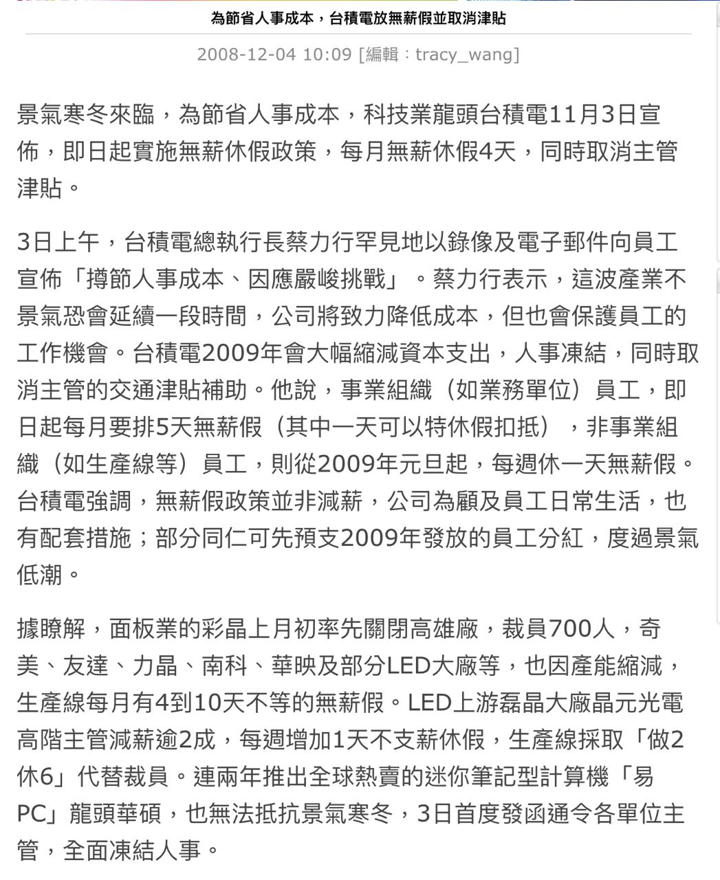 25F:推 analysis5566: 为节省人事成本,台积电放无薪假并取消津贴 12/05 19:28