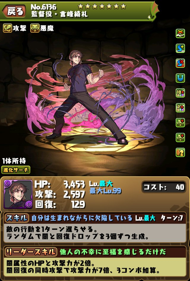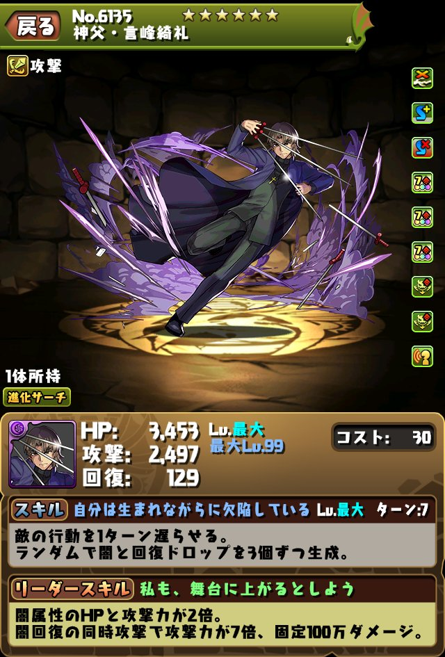 队长:暗属攻血2倍,暗回同时攻击时攻7倍、追加3 COMBO