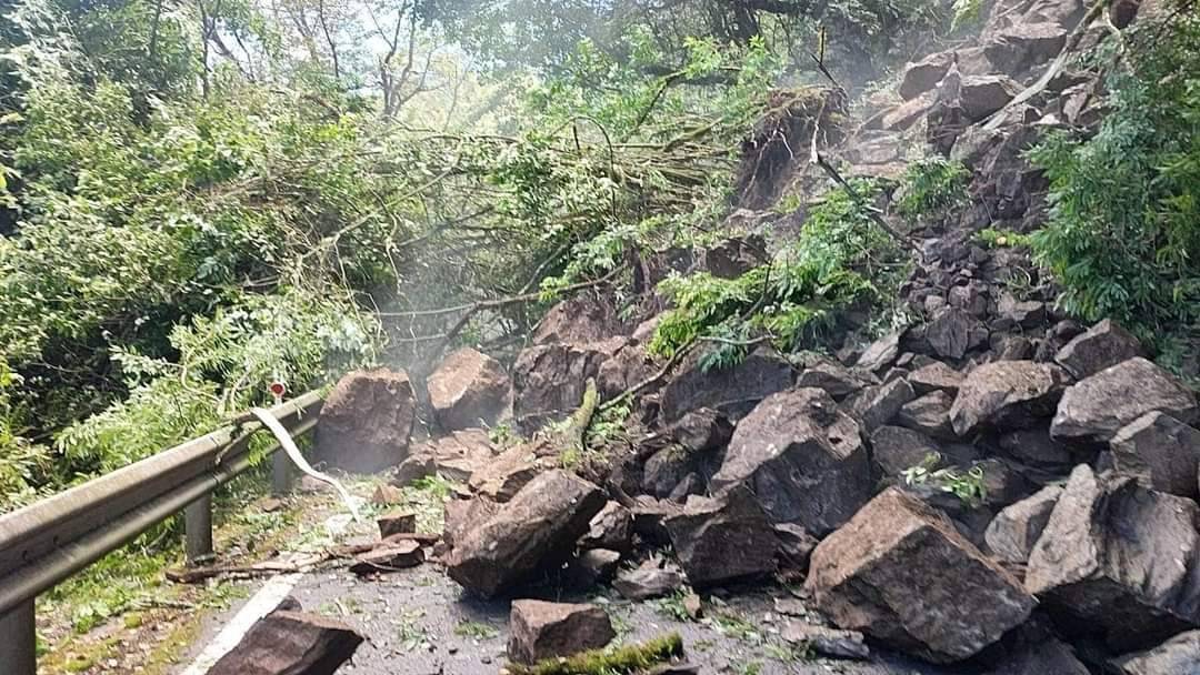 近期午後易有暴雨,山区土石松动,台14线18.7K翠峰路段今发生坍方,落石阻断道路,
