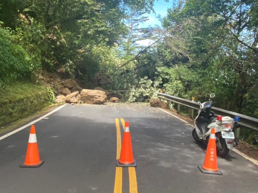 埔里工务段表示,获报当下,随即启动该路段管制警戒,警方也已到场摆放三角锥警示,