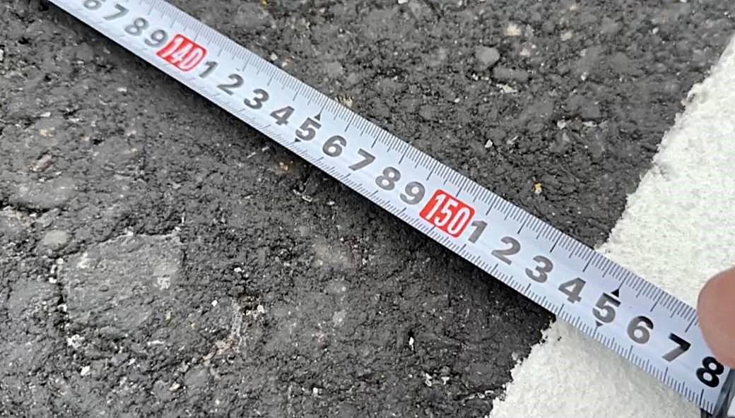 宜兰冬山乡柯林路最近刨铺路面後画标线,被民众发现车道「好窄」仅1.54公尺,比右侧
