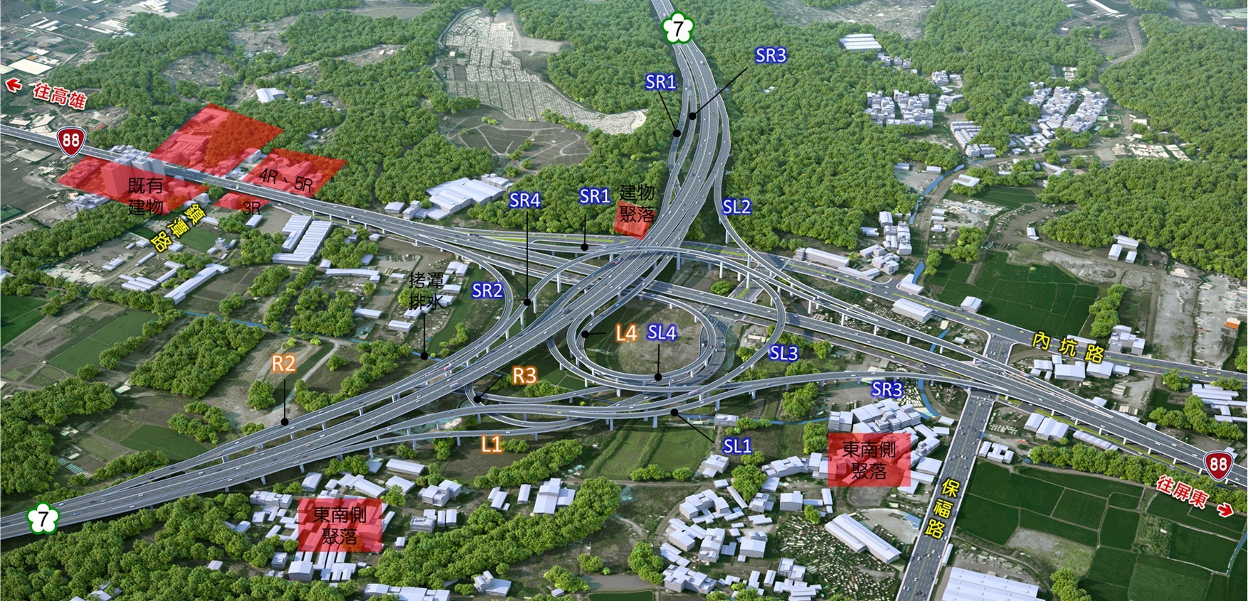 大寮系统交流道模拟图。图/都发局提供