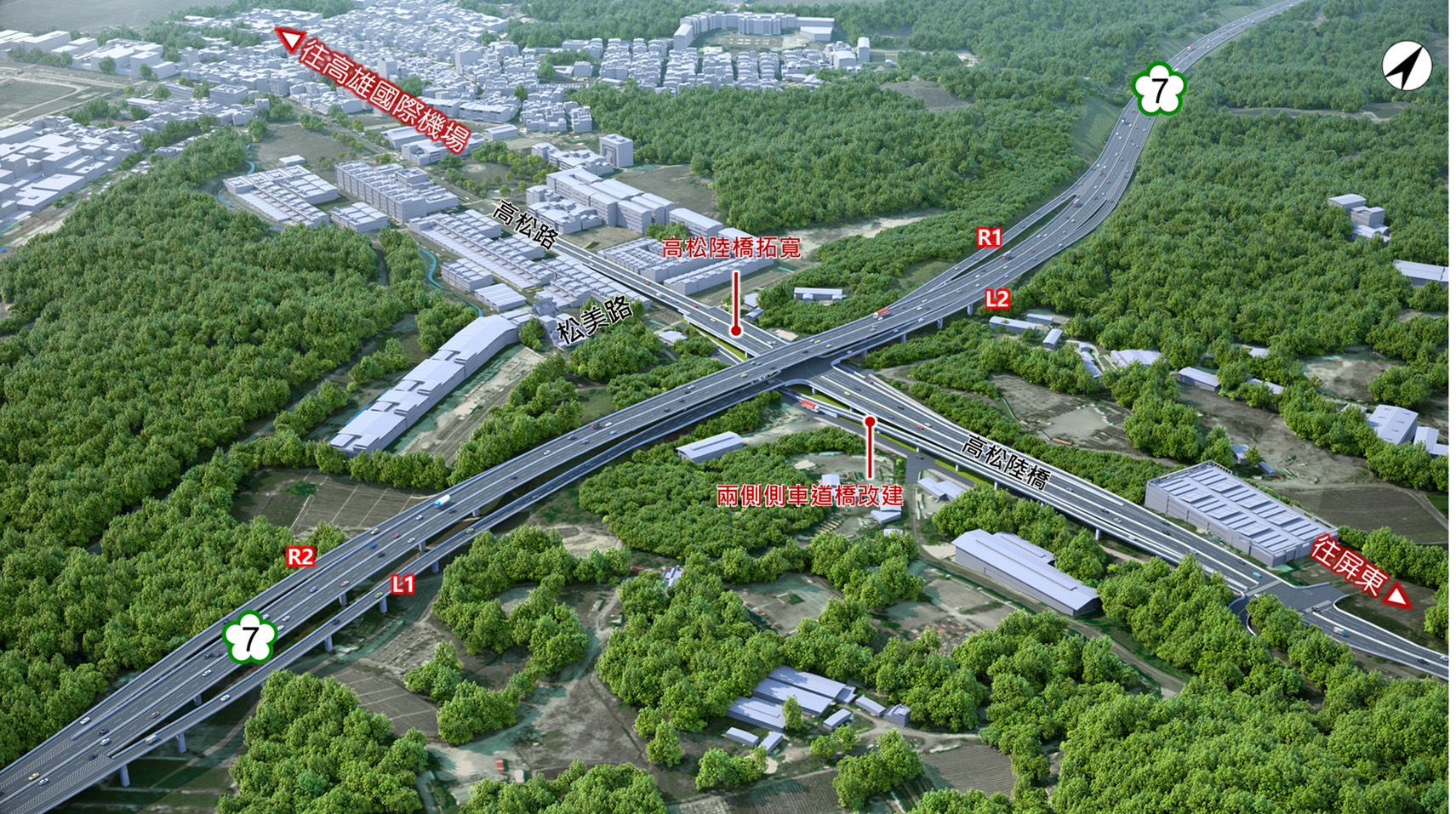 国道七号将与国道1号、国道10号、台88线及规划中的高屏二快串接,东高雄路网将从十