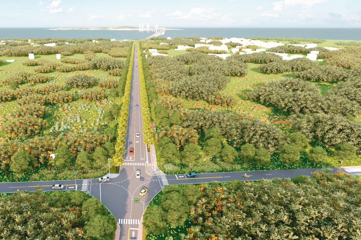 金门「2-29号计画道路」昨动土,将串联金门大桥金宁端至环岛西路二段琼安路口,完工後可大幅缩短烈屿往返金门本岛的交通时间。图/县府提供