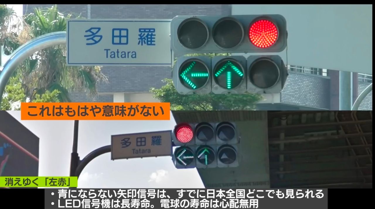 跟台湾一样,日本过去采用的是灯泡号志,青灯与红灯平均每半年需更换一次,黄灯平均