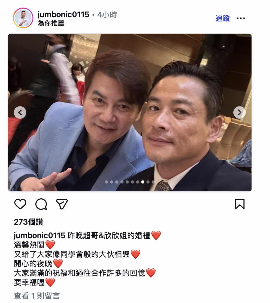347F:→ JokerAwesome: 原来昨天高欣欣举办婚礼 倪哥和江宏恩久违同框 12/13 14:33
