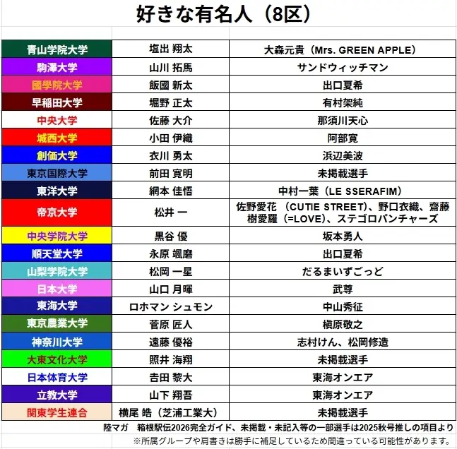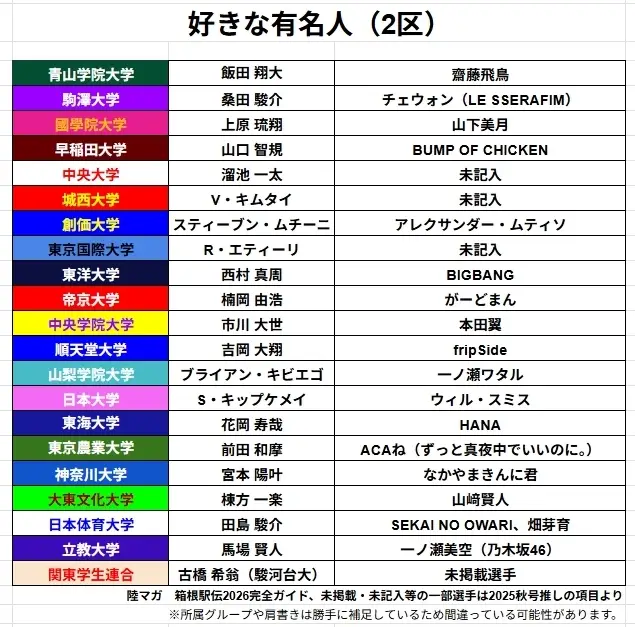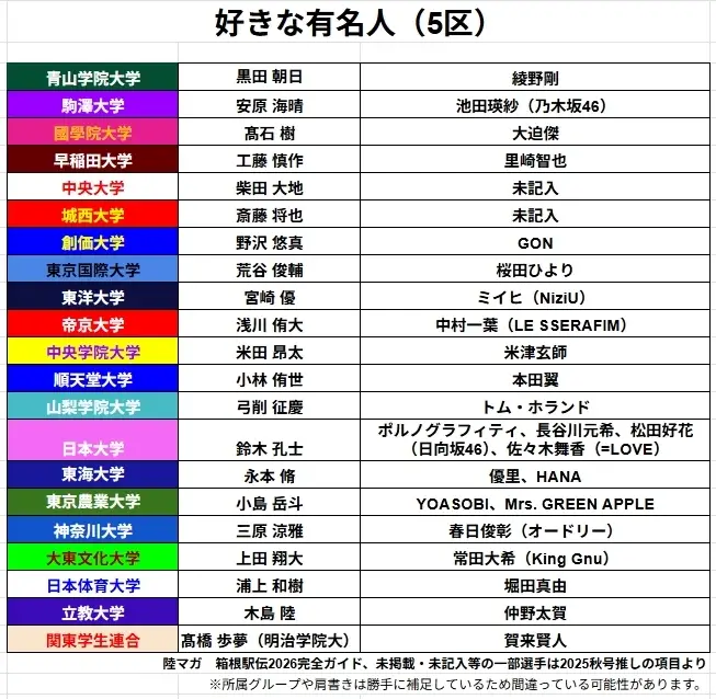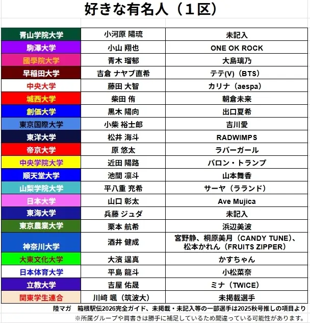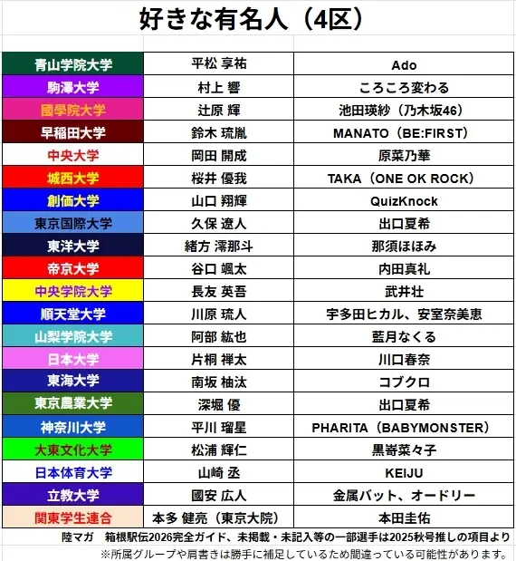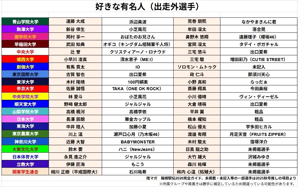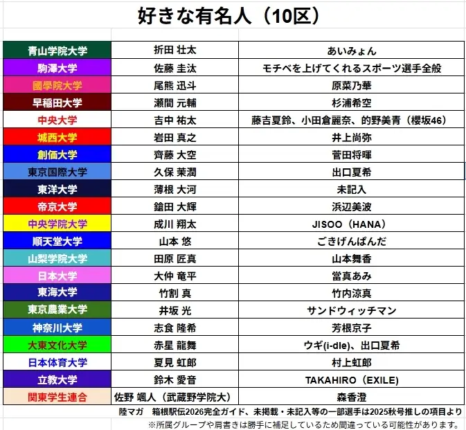 标题Re: [坂道] 箱根驿传之各区选手喜欢的日本艺人