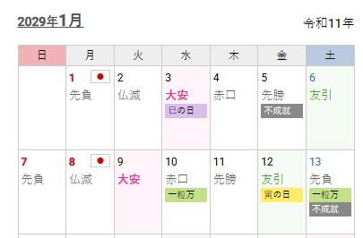 1/5友引 但刚收假太赶 1/6不成就 1/7天皇祭+佛灭