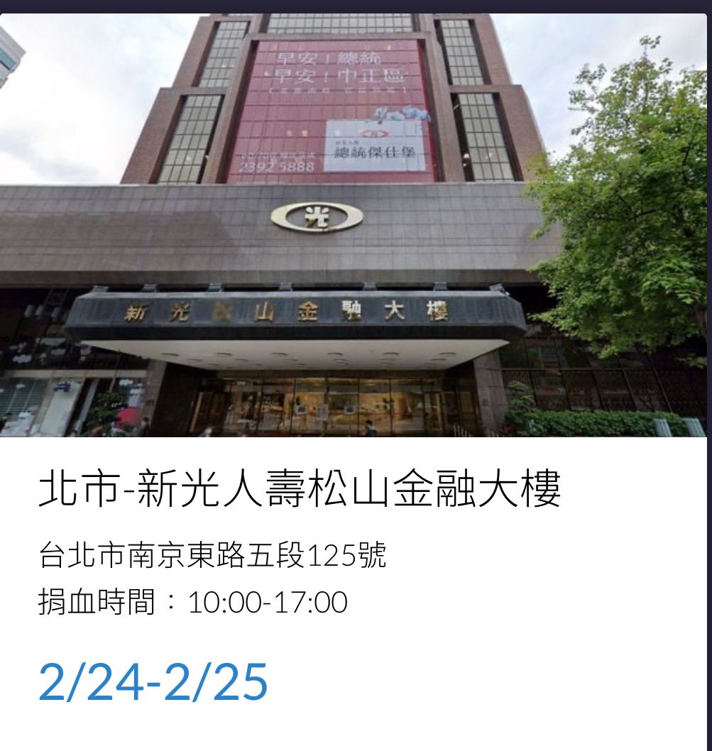 标题[闲聊] 新寿松山金融大楼捐血活动2/24-25