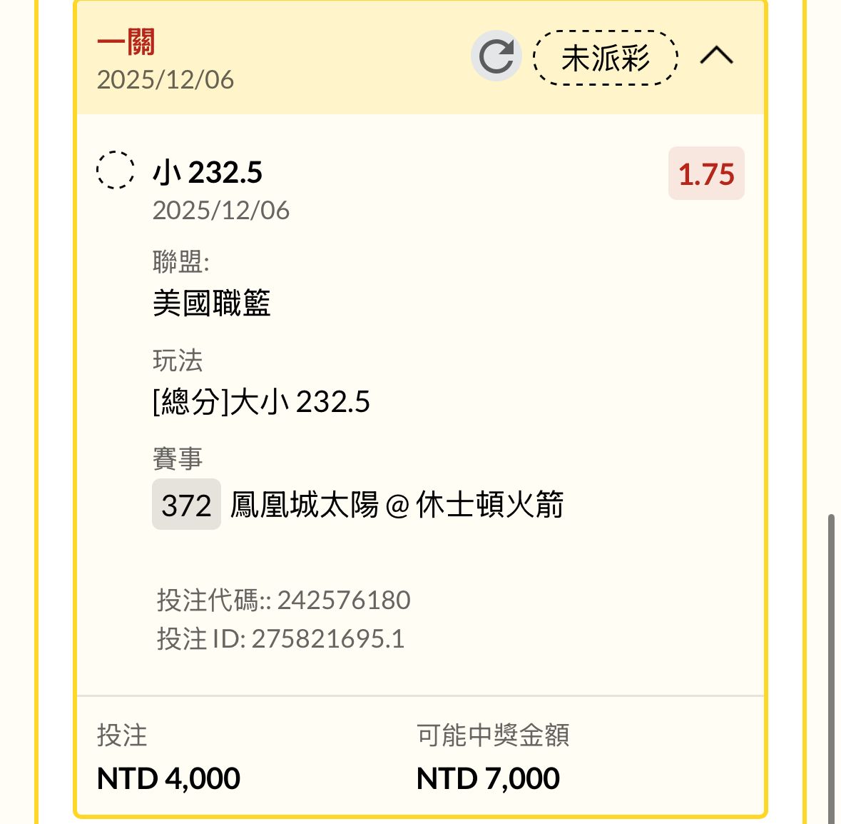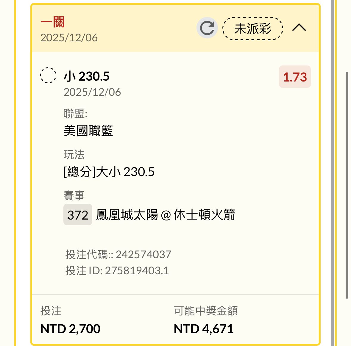 ※ 文章网址: https://webptt.com/cn.aspx?n=bbs/SportLottery/M.1764982243.A.DC5.html