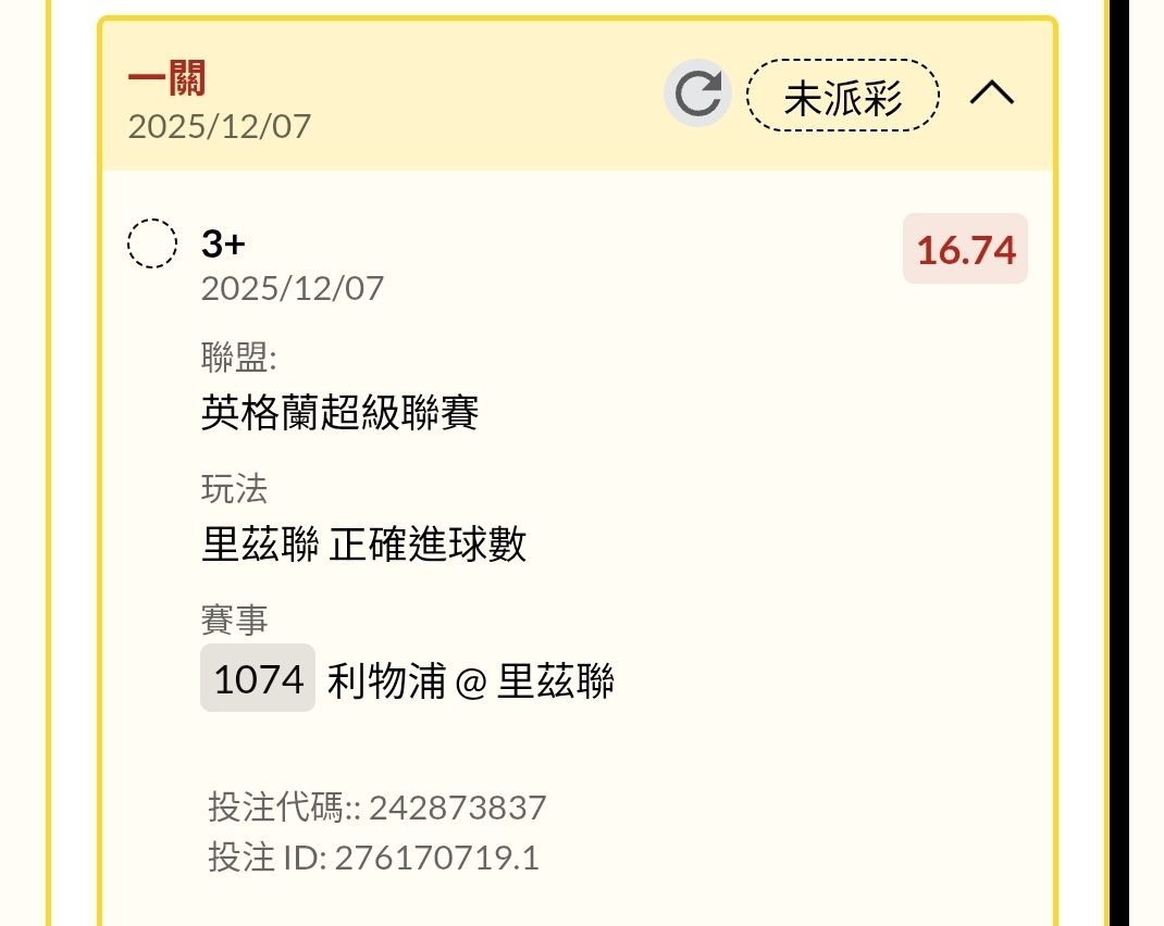 ※ 文章网址: https://webptt.com/cn.aspx?n=bbs/SportLottery/M.1765042812.A.79A.html