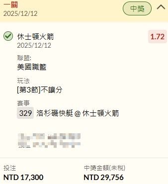 ※ 文章网址: https://webptt.com/cn.aspx?n=bbs/SportLottery/M.1765500353.A.F02.html