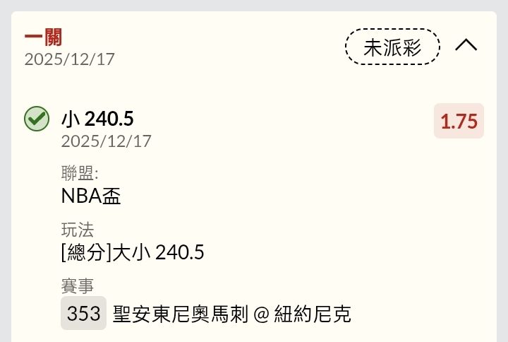 ※ 文章网址: https://webptt.com/cn.aspx?n=bbs/SportLottery/M.1765933203.A.155.html