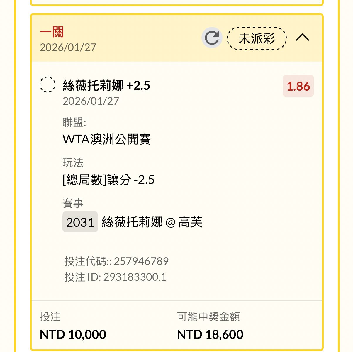 ※ 文章网址: https://webptt.com/cn.aspx?n=bbs/SportLottery/M.1769500600.A.2D9.html