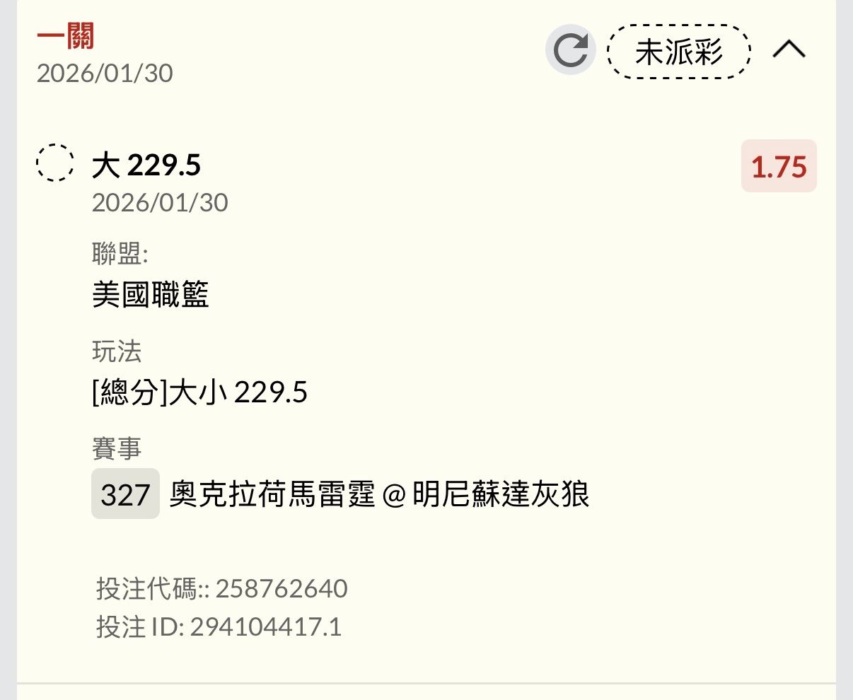 ※ 文章网址: https://webptt.com/cn.aspx?n=bbs/SportLottery/M.1769740909.A.06F.html