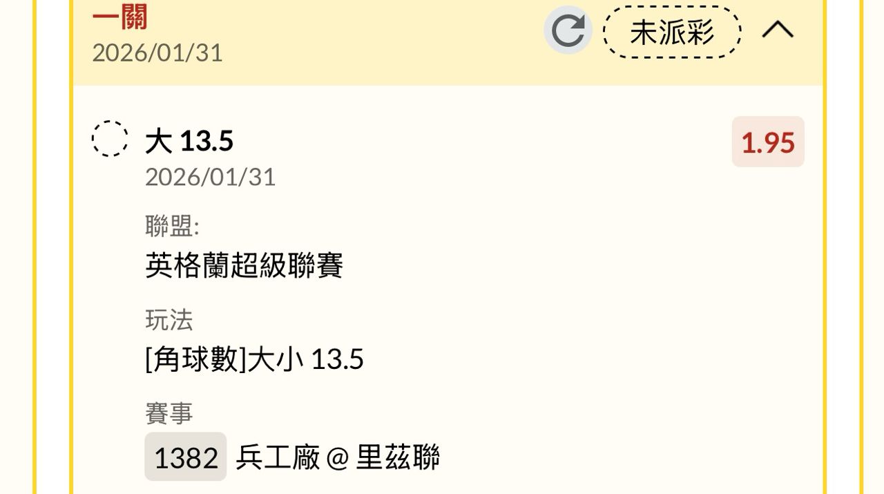※ 文章网址: https://webptt.com/cn.aspx?n=bbs/SportLottery/M.1769869804.A.F71.html