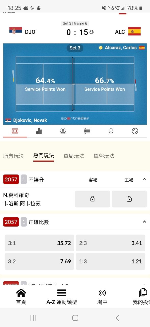 标题[LIVE] 澳网 乔科维奇 @ 阿卡拉兹 场中
