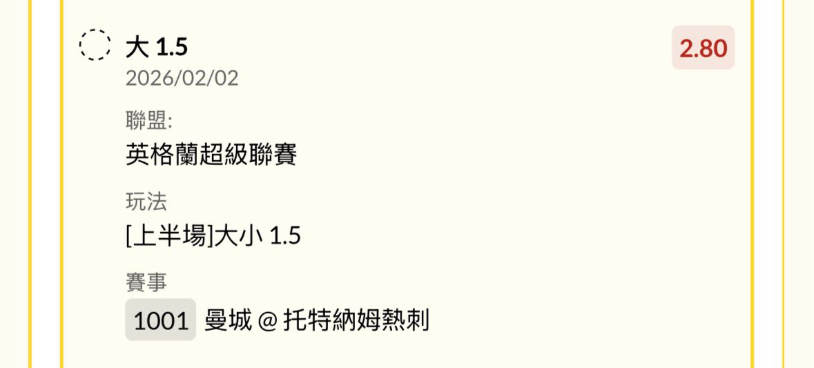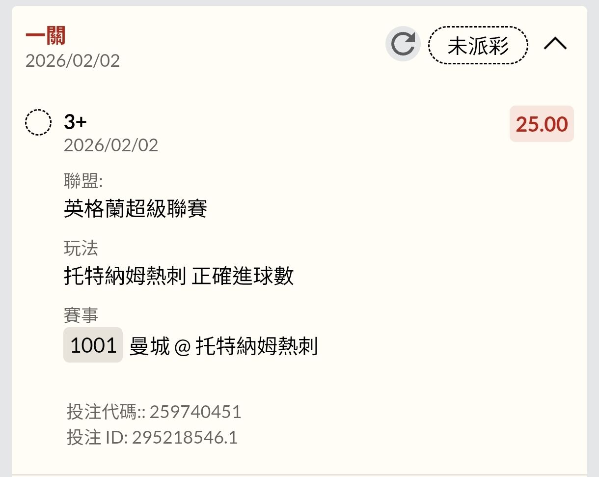 ※ 文章网址: https://webptt.com/cn.aspx?n=bbs/SportLottery/M.1769961909.A.6E4.html
