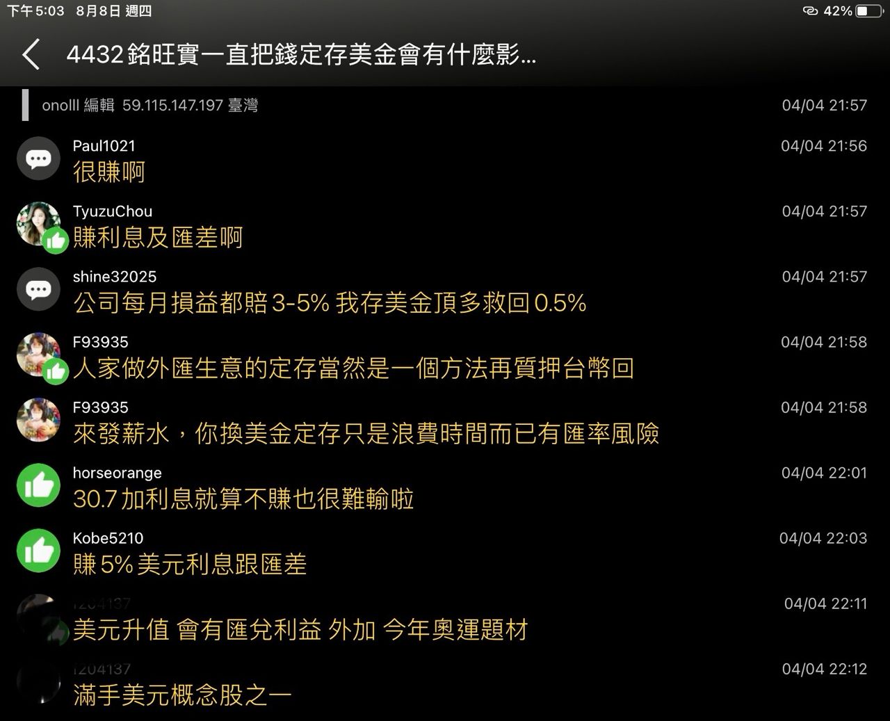 1429F:推 a069275235 : 笑死 他可能不知道4 5月台币强升吧 11/26 13:48