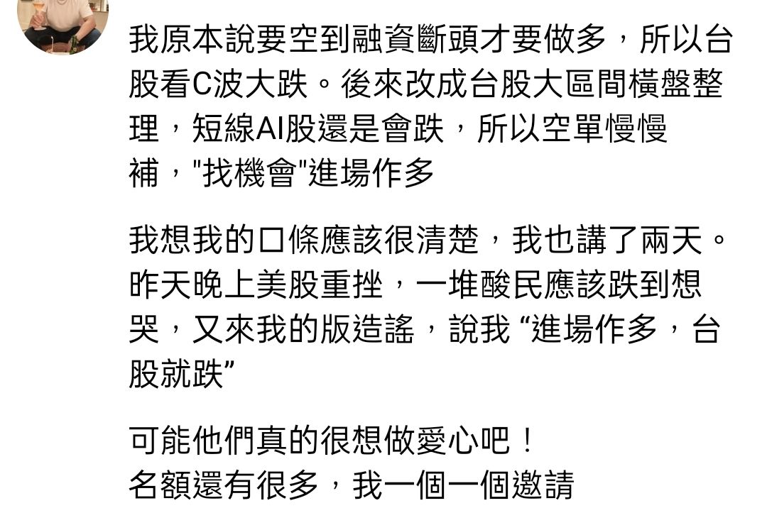 58F:→ barry841120 : 老苏自己觉得没有输吧 一直提小QE让他没有赚到 12/12 14:05