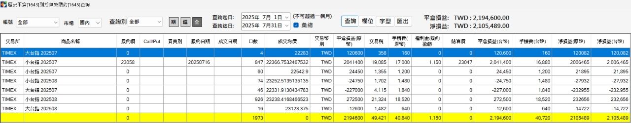 商品:台指期(纯程式交易)+台指选(纯手单)