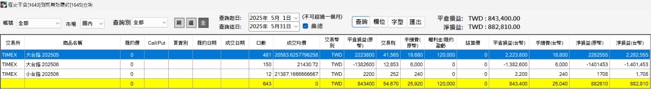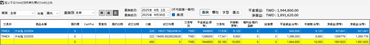 损益公式:已含手续费/交易税/滑价;未扣程式交易投入成本