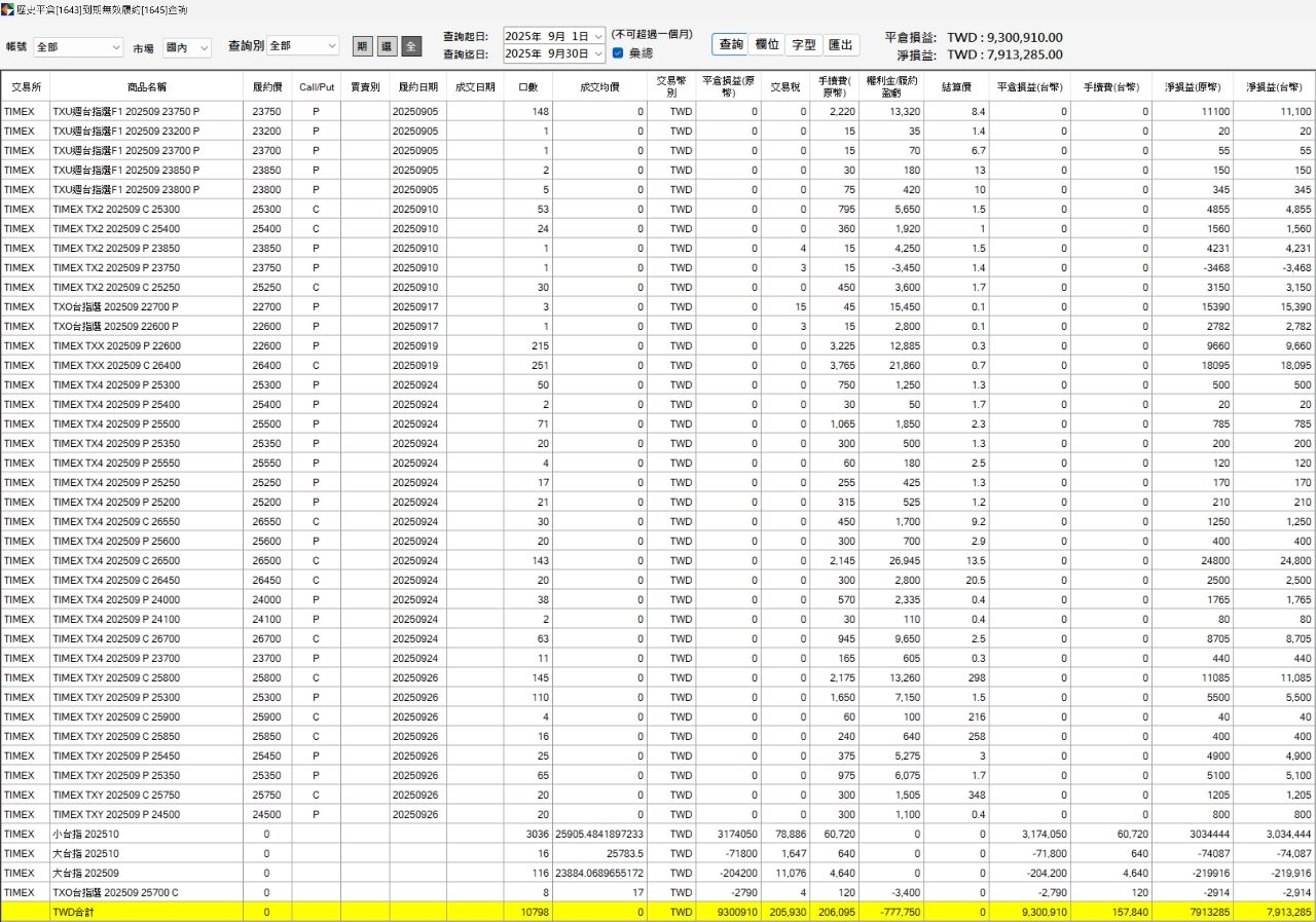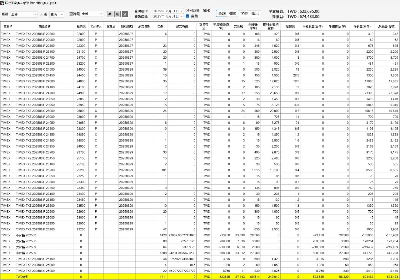 选择权是 2025/8 才开始做,目的是平滑程式交易的权益曲线。
