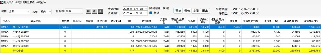 月均大概2万口左右,都做卖方,主要操作逻辑是程式交易部位都赚趋势盘