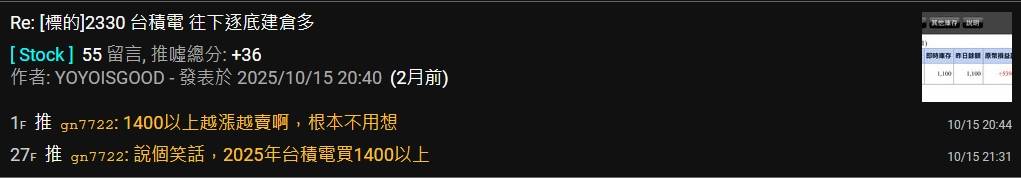 1411F:推 Gipmydanger : 台积电四五百就在看空的大师 01/10 16:54