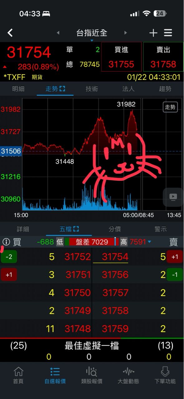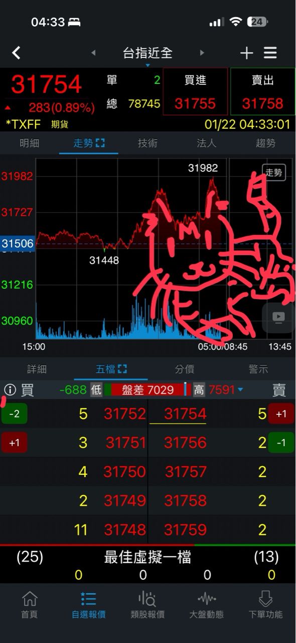 1383F:→ astrokid : 哎呦,夜盘半夜又拉了个高潮 01/22 08:08