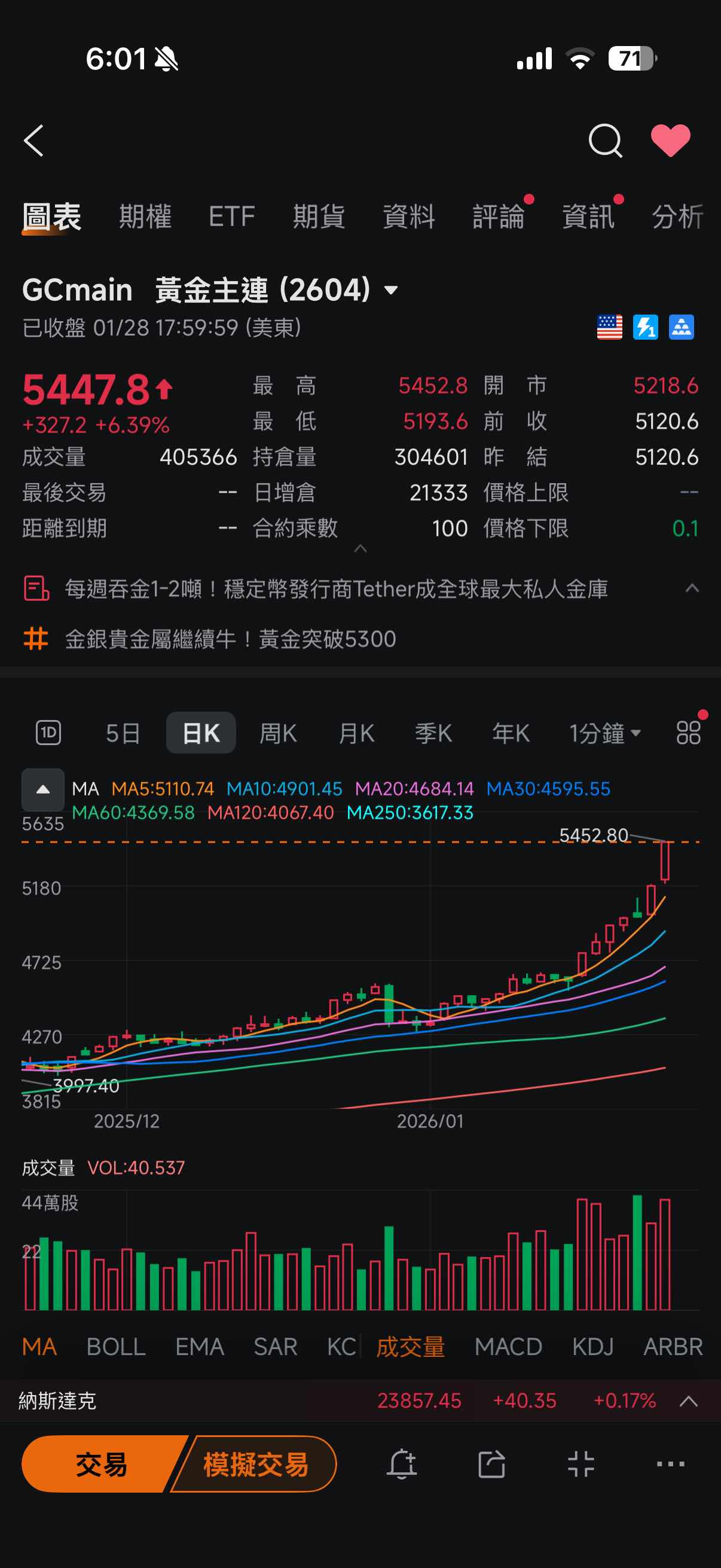 1385F:推 offstage : 该不会开盘前黄金就5600了? 01/29 07:58