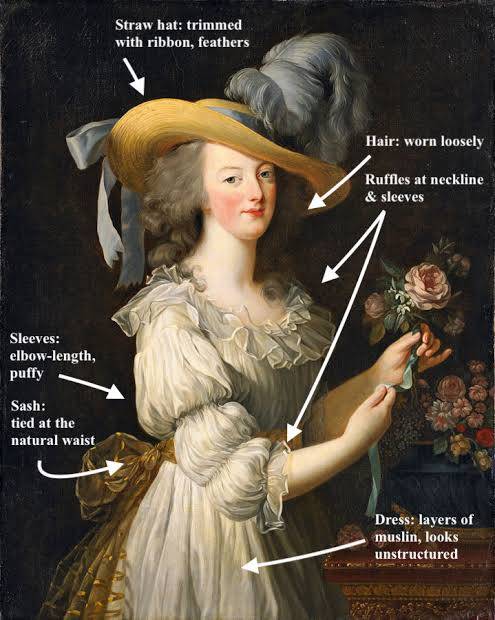 还有新古典时代流行的轻盈裙装的前身“女王衬衫裙"chemise à la reine,