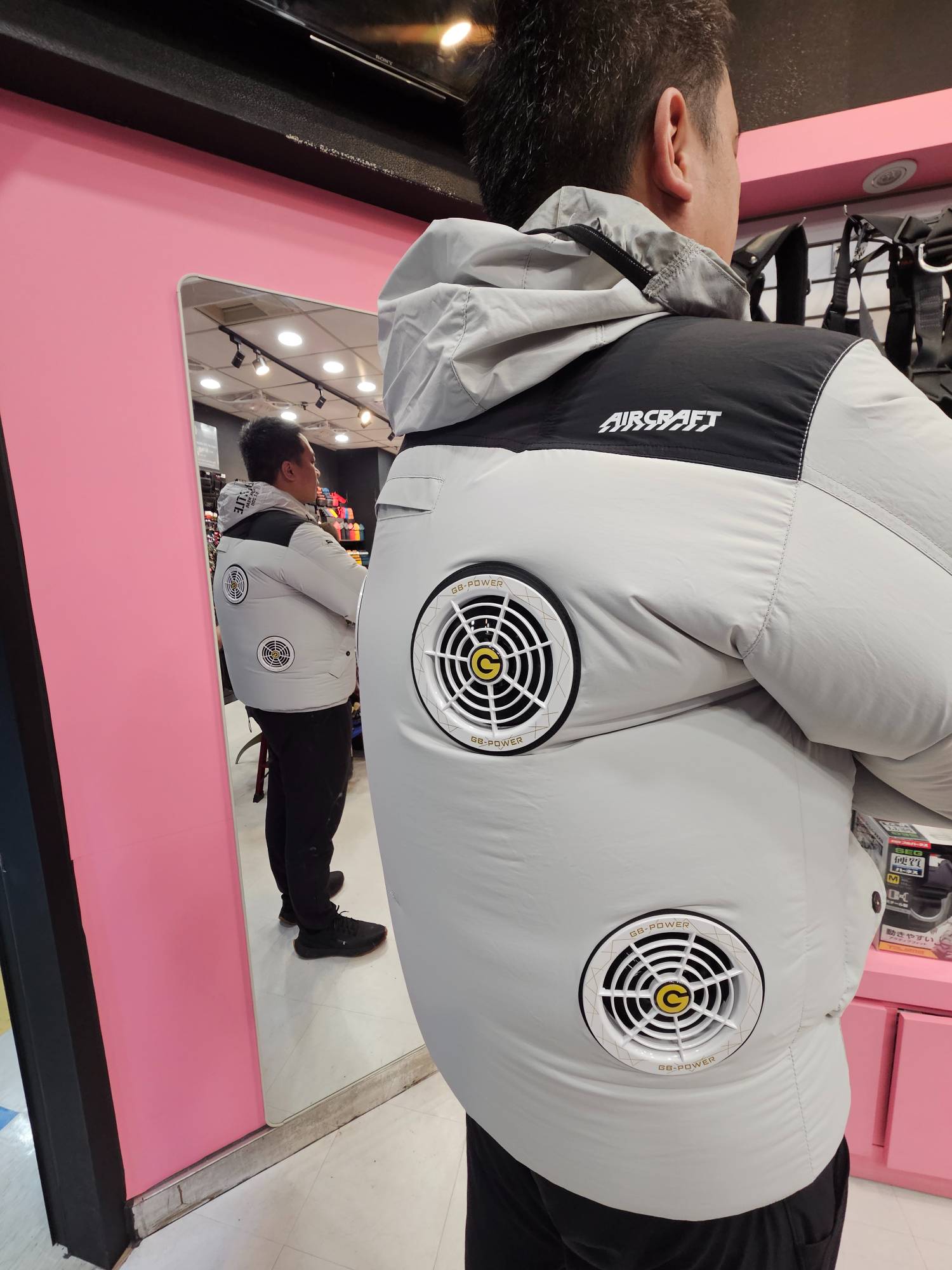点,不管是外套/短袖/背心,衣物内的空气流通空间就会比较大,相对的对风扇的流量要