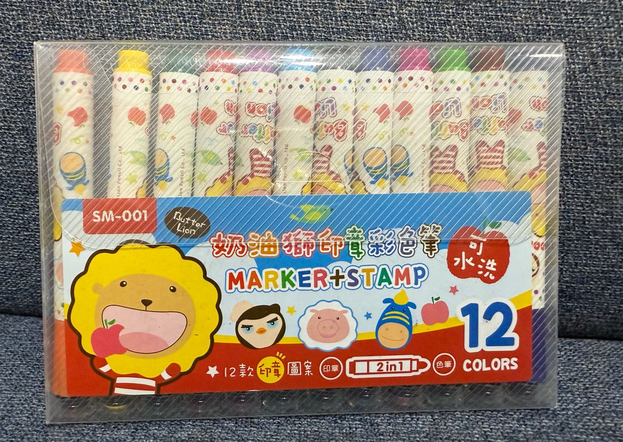 7. 全新雄狮可水洗印章彩色笔2合1共12色 售50