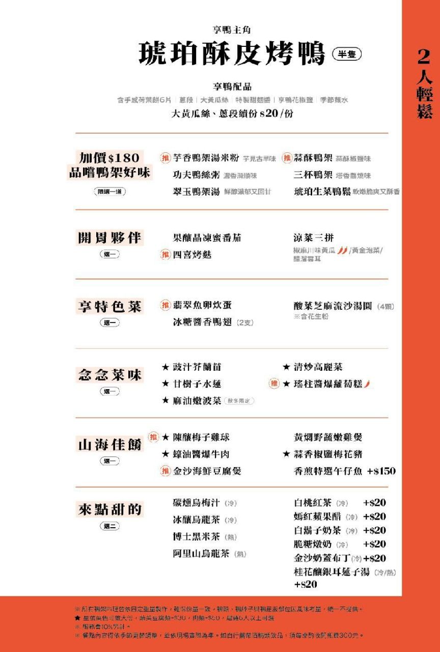 双人套餐1420 鸭架料理180