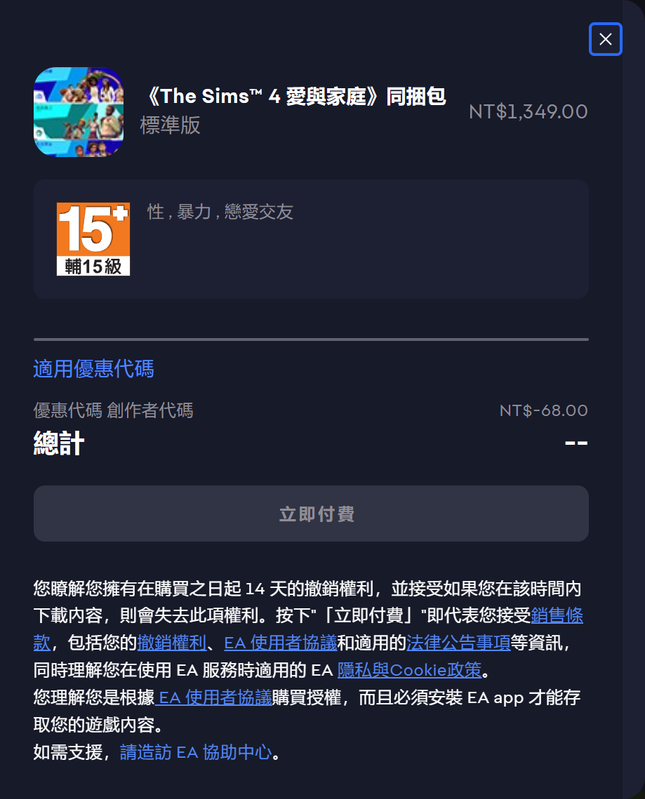 TS4 扩充包 7.0 折 NTD 377