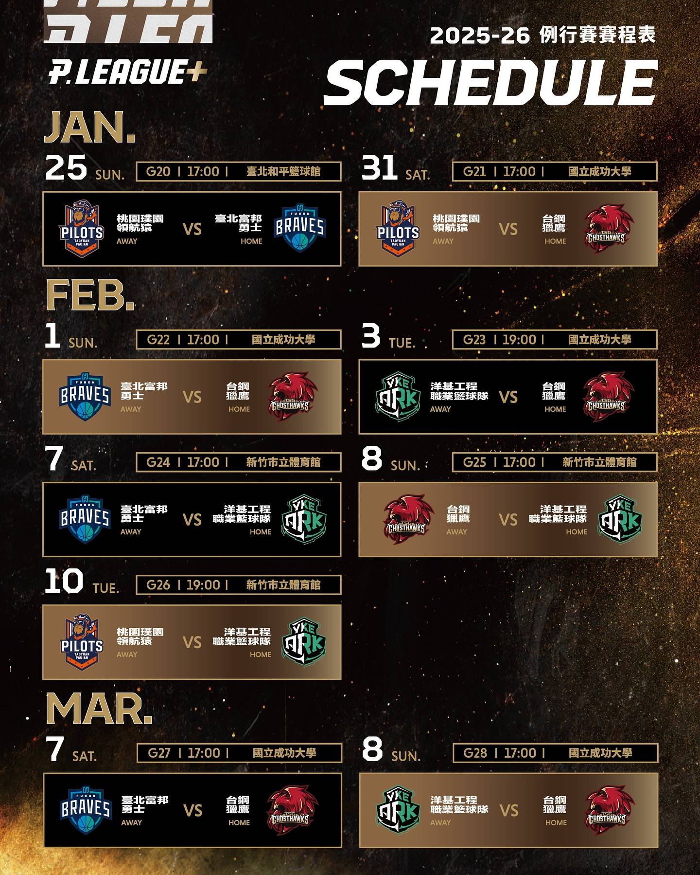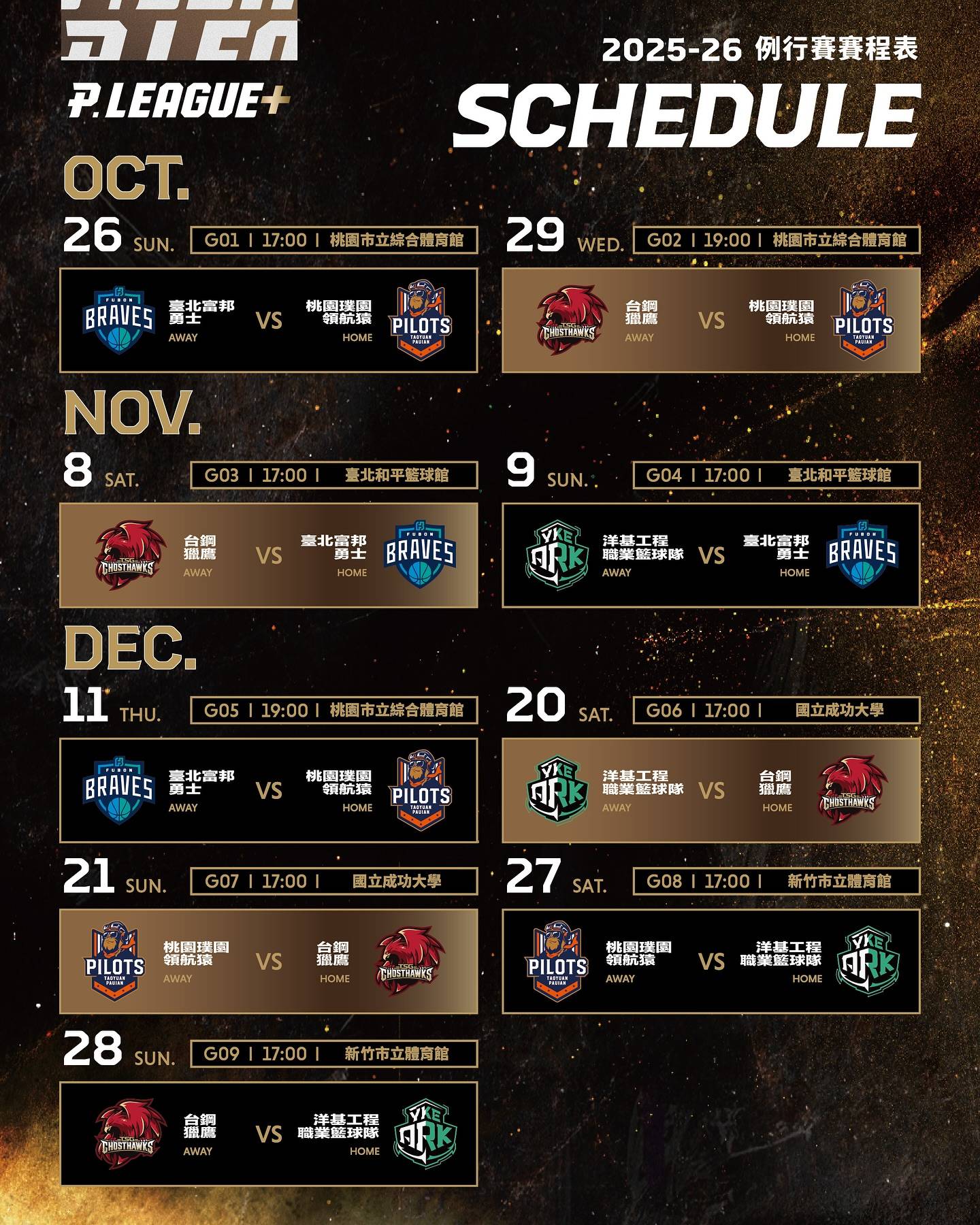 标题[情报] 2025-26 PLG 例行赛赛程
