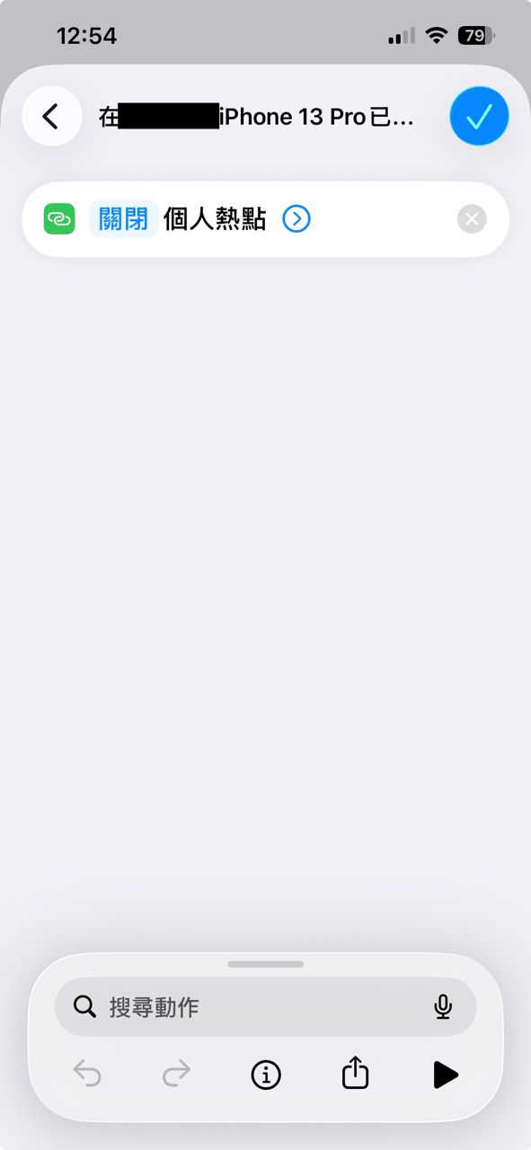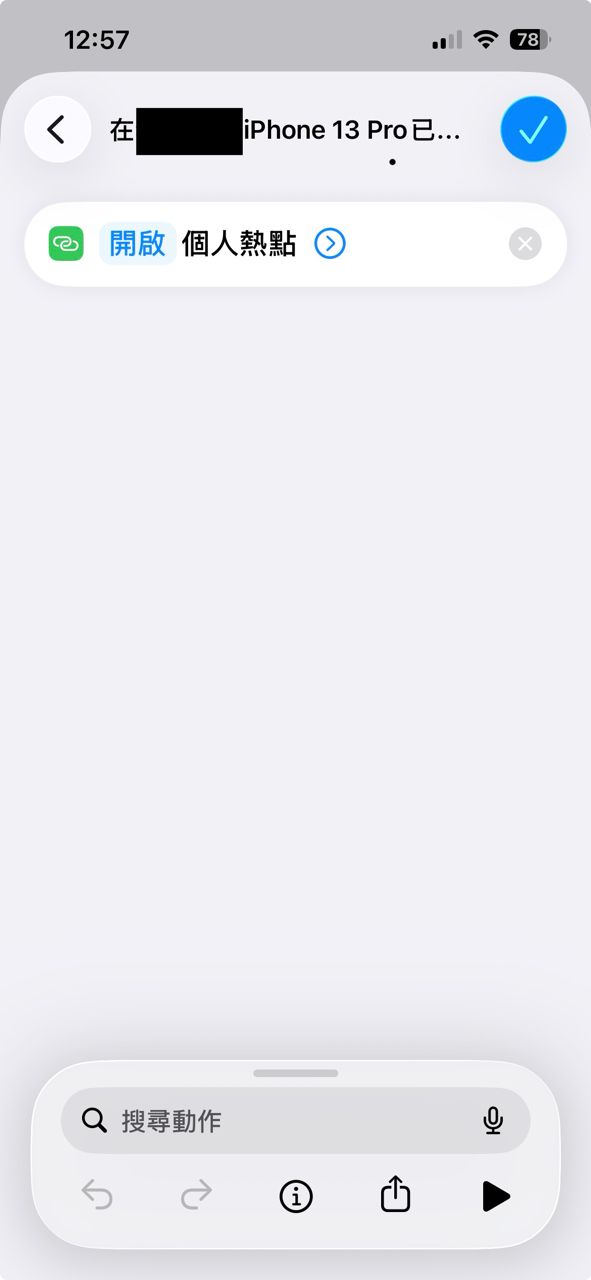 设定执行动作--》 点击「空白自动化」, 在搜寻框搜寻 「设定个人热点」