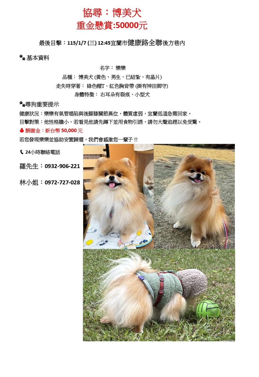 标题[拾寻] 重金悬赏博美犬、奖金50000