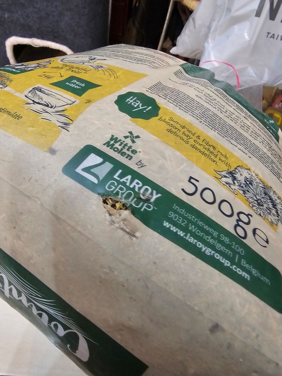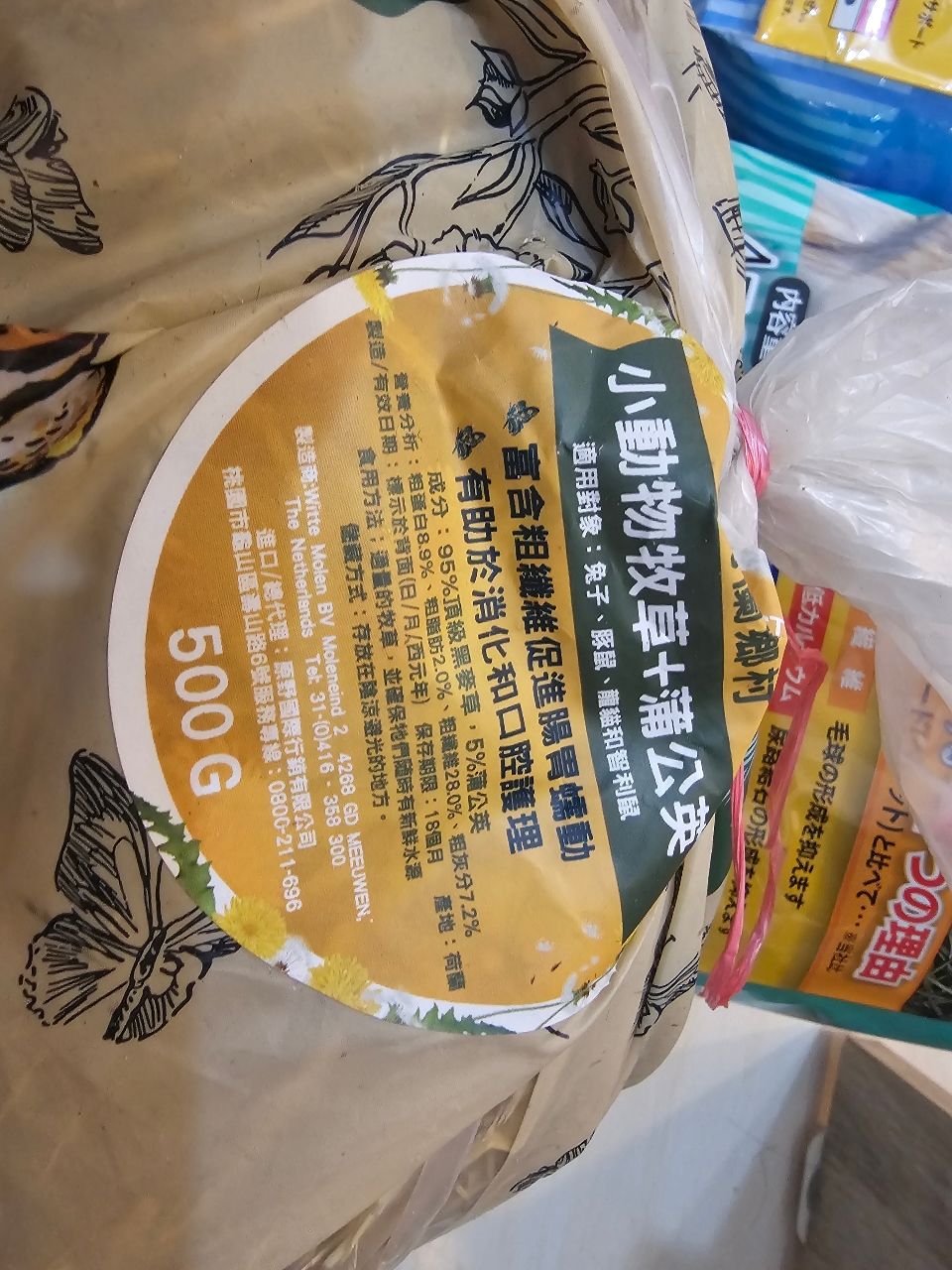 上面两包分别是金牌的葛兰牧草跟提摩西,四包都被兔宝打枪,故赠送给不挑食的兔宝。