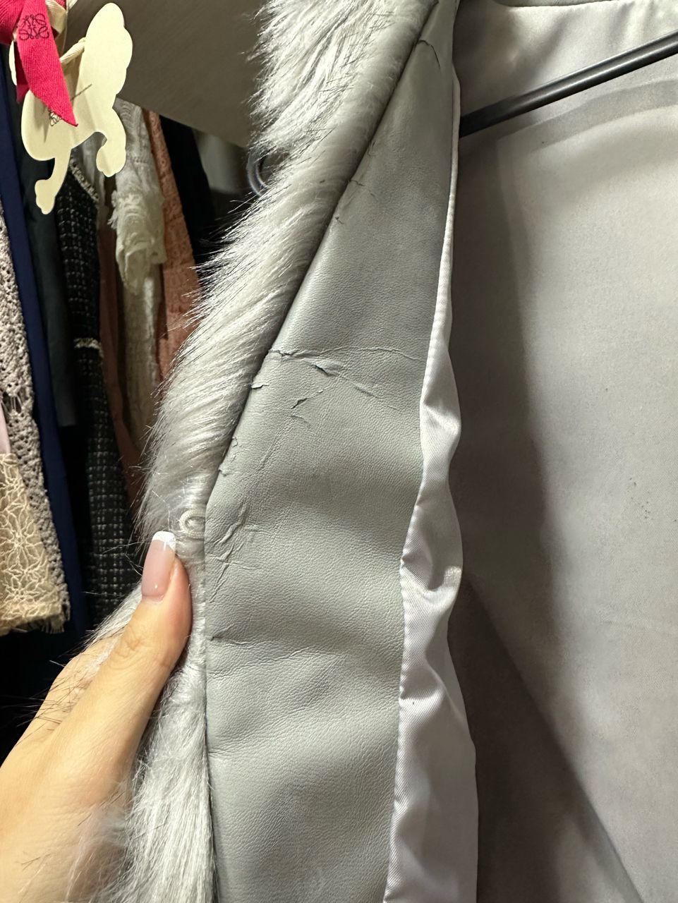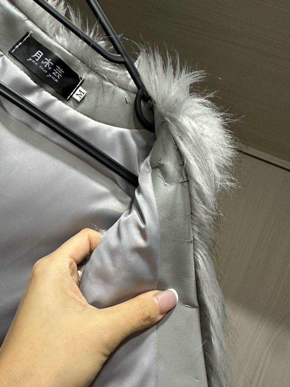外观真的很不错,只穿过一次,但因为久放所以皮革处多处开裂,非常可惜,尺寸是F均