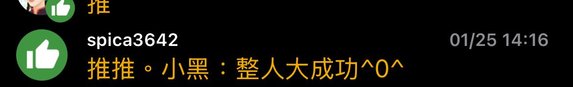 9F:推 spica3642: 推推。小黑:整人大成功^0^ 01/25 14:16