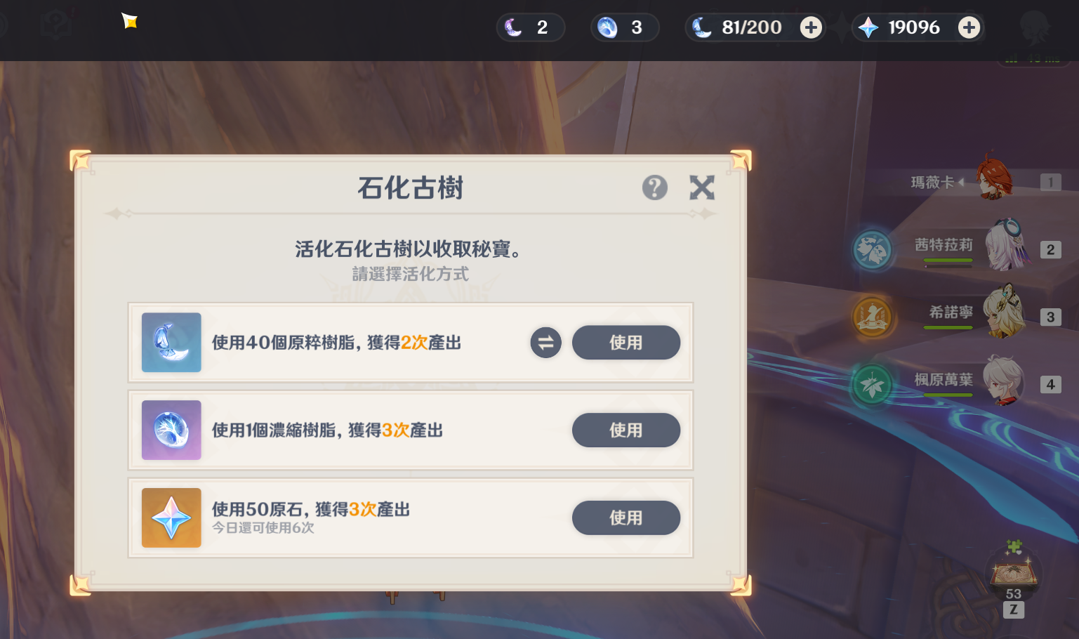 3F:→ Wardyal: 三个选项没有直接用须臾树脂的 还是点原石会有选项 09/14 08:21