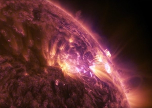 「闪焰」,由於肉眼无法看到闪焰,NASA做了变色处理,壮观场景绚烂美丽。