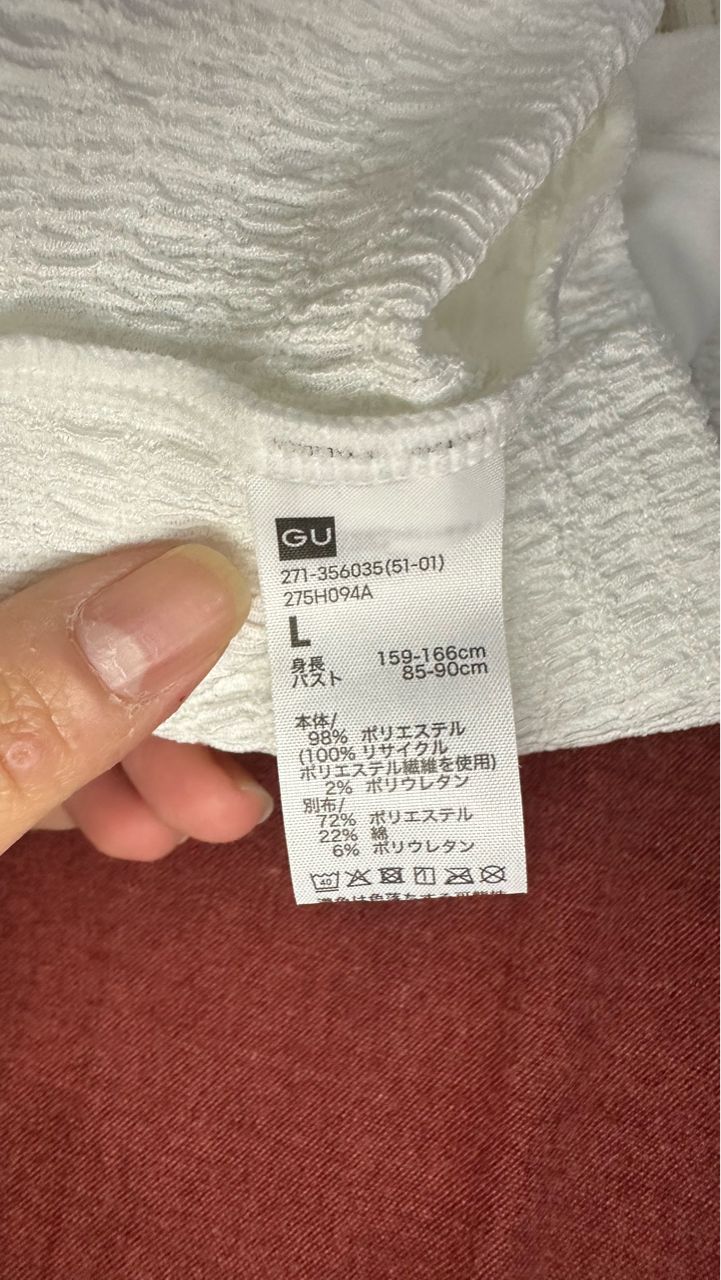 标题[赠送] 全新 GU 白色 bra top 两件 L/XL