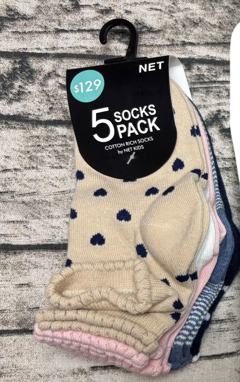 1. 商品名稱:全新女童13-15cm襪子五雙+毛帽