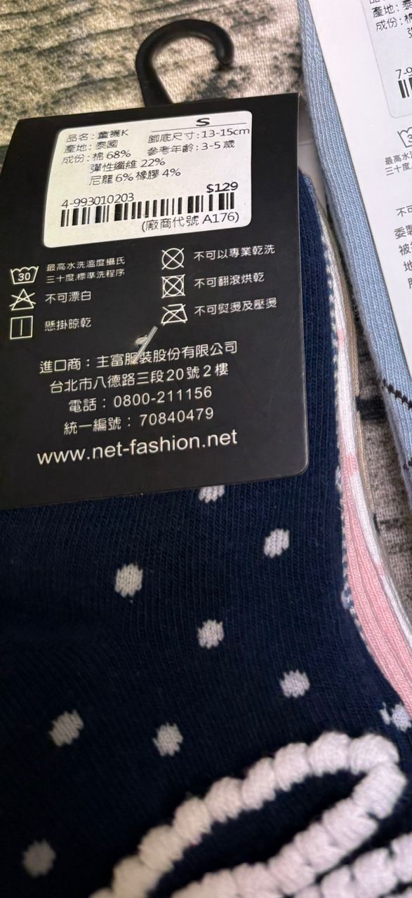 3. 商品名稱:NET冰雪奇緣款童襪16-18cm三雙