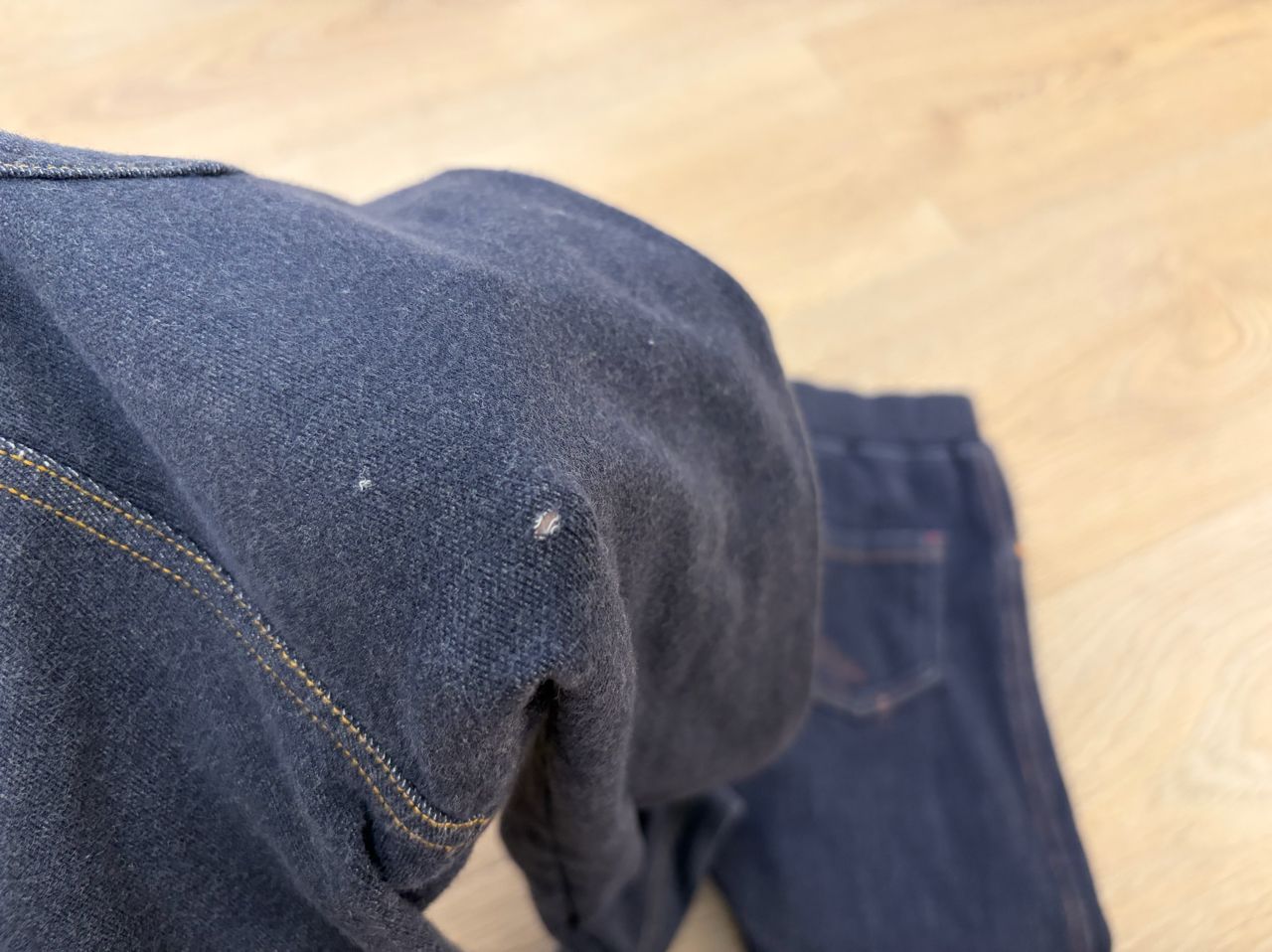 備註:一件長褲布料較厚,有一小塊染色;另一件較薄,有小洞(後口袋下方)