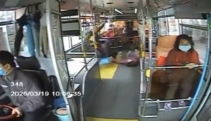還沒坐下反應不及,被急剎的作用力往後拋飛,被重重摔在公車地板上;兩位婦人送醫救