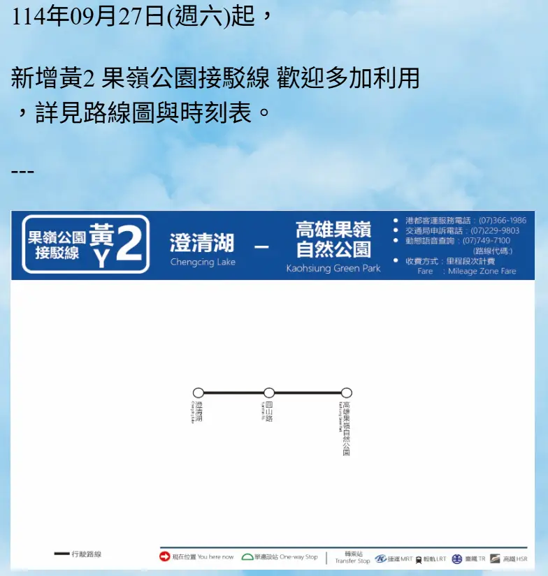 標題[時刻] 250927 港都 黃2果嶺公園接駁線